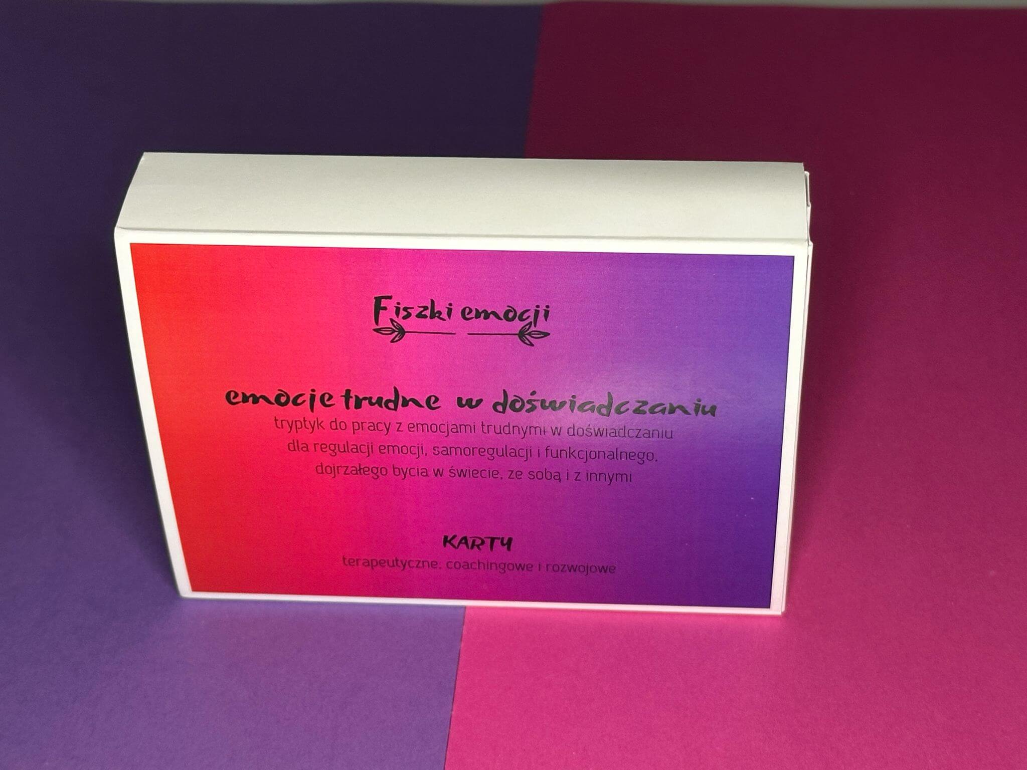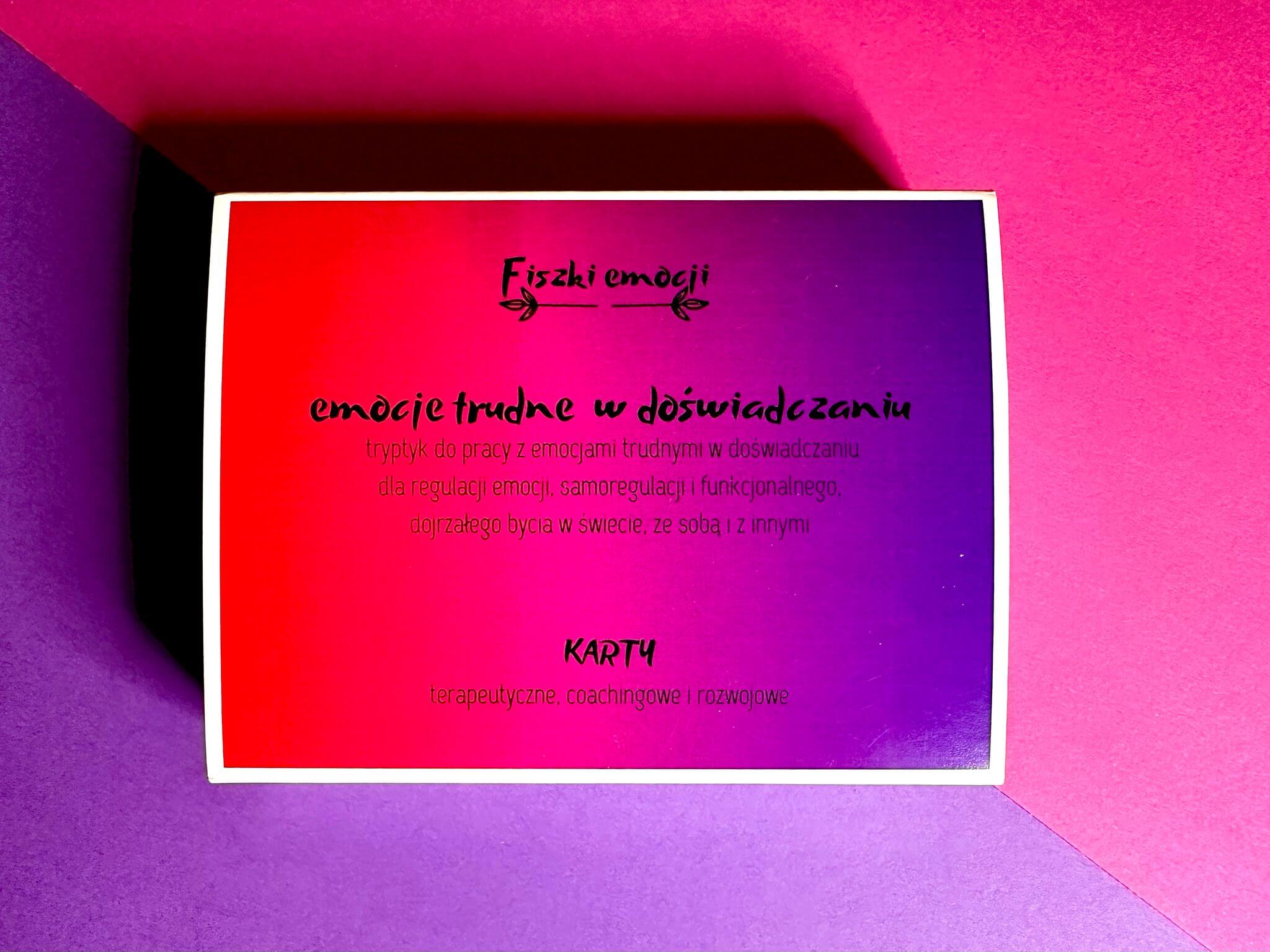Budowanie relacji z emocjami, by czerpać z mądrości emocji to 54 karty, które pomagają budować bezpieczną relację z emocją i zrozumieć po co pojawia się emocja oraz jaką ważną informację przynosi. Fiszki zawierają 19 kart z pytaniami, które można sobie zadać dla dowolnie wybranej emocji trudnej w doświadczaniu oraz 35 fiszek z nazwami konkretnych emocji trudnych w doświadczaniu z pytaniami dedykowanymi konkretnej emocji trudnej w doświadczaniu.